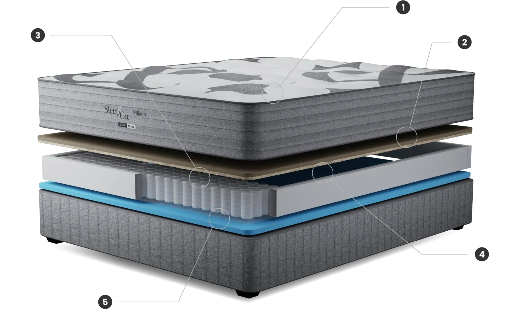 Milano pairs refined European simplicity with aligned support. For those whoappreciate a modern, balanced sleep surface that restores & centres.